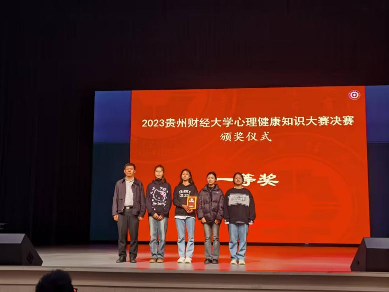 贵州财经大学2023年11月21日在报告厅成功举办了“心灵相约,健康同行”心理健康知识竞赛。此次竞赛旨在提升大学生对心理健康的认识,增强自我调节和应对压力的能力。本次竞赛以学院为单位进行,共计16支参赛队伍,初赛环节通过笔试各学院已选出参赛队伍。复赛则以现场答题的方式进行,题目涵盖了心理健康、压力应对、情绪管理等多个方面。决赛环节紧张刺激,经过激烈的角逐,会计学院的李盈盈、覃雅婷、刘光阳、李谍4位同学凭借扎实的心理健康知识和临危不乱的心态,成功斩获一等奖。