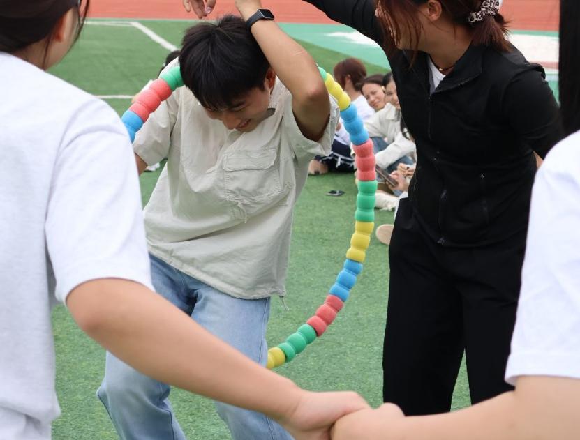 在开幕式上,会计学院党委副书记黄忠莉老师为活动致辞,她指出“启航杯”不仅是运动竞技的舞台,更是新生融入学院、结识伙伴的纽带,希望大家在奔跑与协作中感受集体温暖,以运动激情点燃青春新征程。紧接着,运动员代表李思和裁判员代表李桐羽庄严宣誓,承诺将严格遵守比赛规则、秉持公平公正原则。随后由黄忠莉老师宣布“启航杯•青春运动季”开幕,正式开启了这场充满活力的体育系列活动。开幕式结束后,趣味运动会率先开展,协力竞走、呼啦圈接力等项目依次进行,学生们专注配合,以和谐友爱诠释了“友谊第一、比赛第二”精神,展现了会计学院的优良风貌。