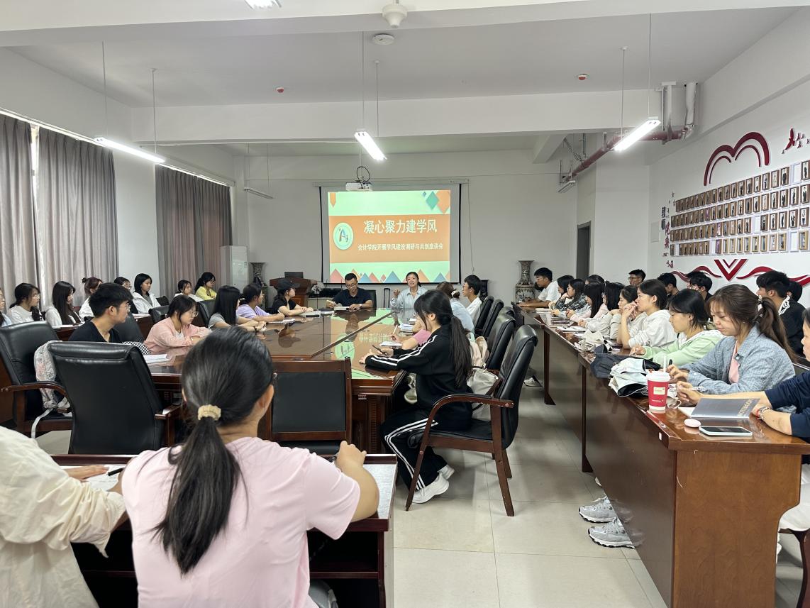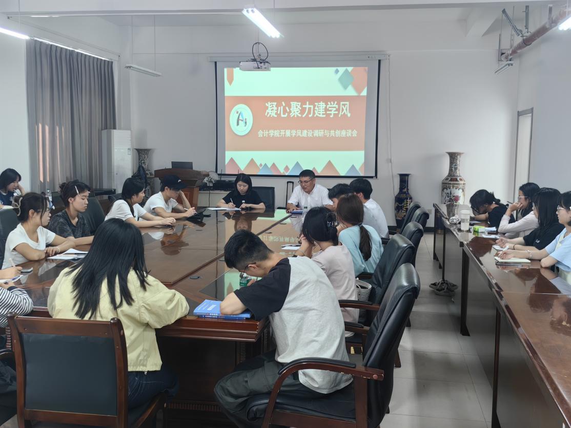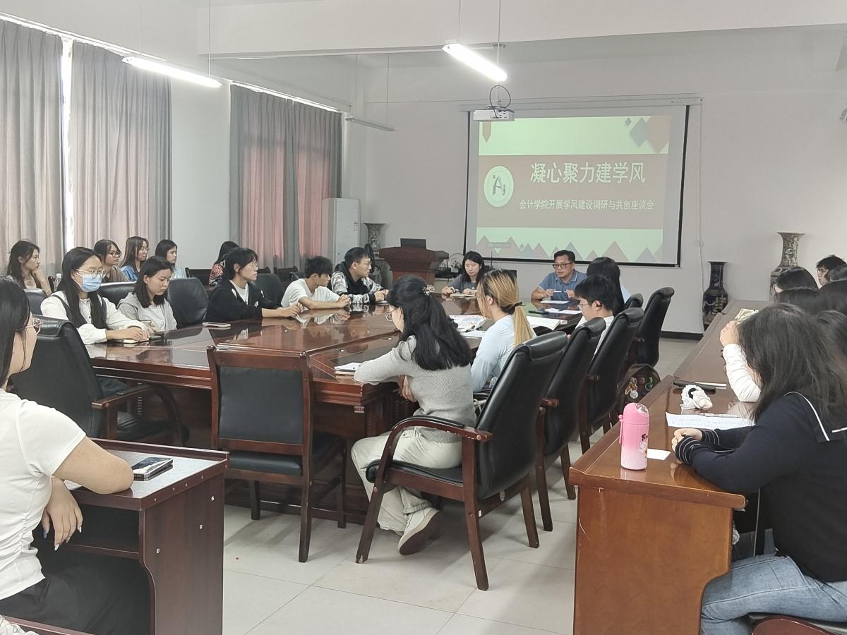 为深入学习贯彻习近平总书记关于教育的重要论述,落实学校第三次党代会精神,进一步加强我院学风建设,营造积极向上、求真务实的育人氛围,切实提升教育教学质量与人才培养水平,会计学院党政领导班子成员组织召开学风建设调研与共创座谈会。各年级各专业的党员、班干、团干、入党积极分子等代表参与座谈。