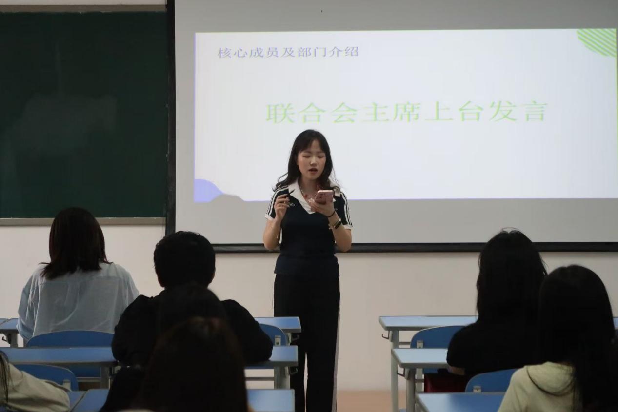 随后,联合会主席团成员依次上台介绍自己分管部门情况,结合自身工作经历,分享了在联合会的成长与收获,从工作方法、时间管理、沟通技巧等方面为新成员提供了实用建议,并鼓励新成员珍惜此次机会,积极发挥自身优势,在联合会的平台上绽放光彩。各部门负责人也分别介绍了部门的主要工作内容、特色活动及未来工作计划,让新成员对各部门职能有了更清晰的认识,为后续工作的顺利开展奠定了基础。