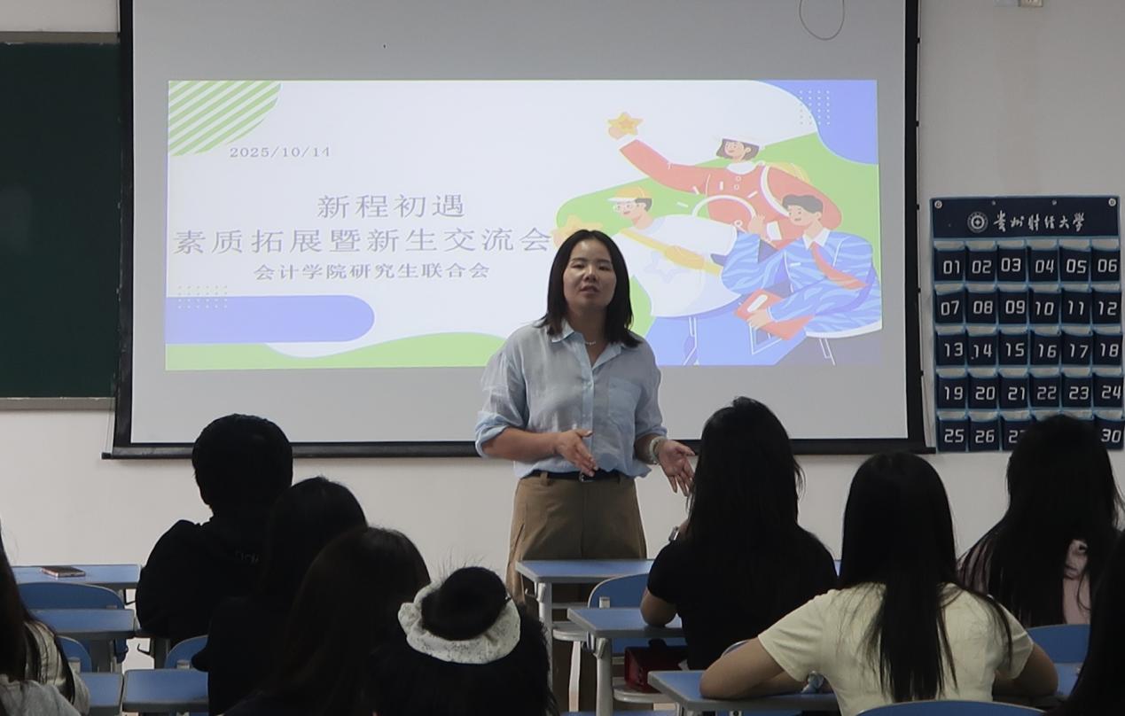 首先,联合会指导老师胡玲对新成员的加入表示热烈欢迎,重点介绍了联合会的组织架构与核心职能。她强调,联合会是连接学院与广大研究生的重要桥梁和纽带,肩负着服务同学、助力学院学风与文化建设的重要使命。同时,她对联合会新成员提出三点期望:一是要守住学业为本的底线;二是要保持服务同学的初心;三是要注重团队协作,在工作中相互学习,相互支持,共同打造一支有凝聚力、有战斗力的优秀团队。