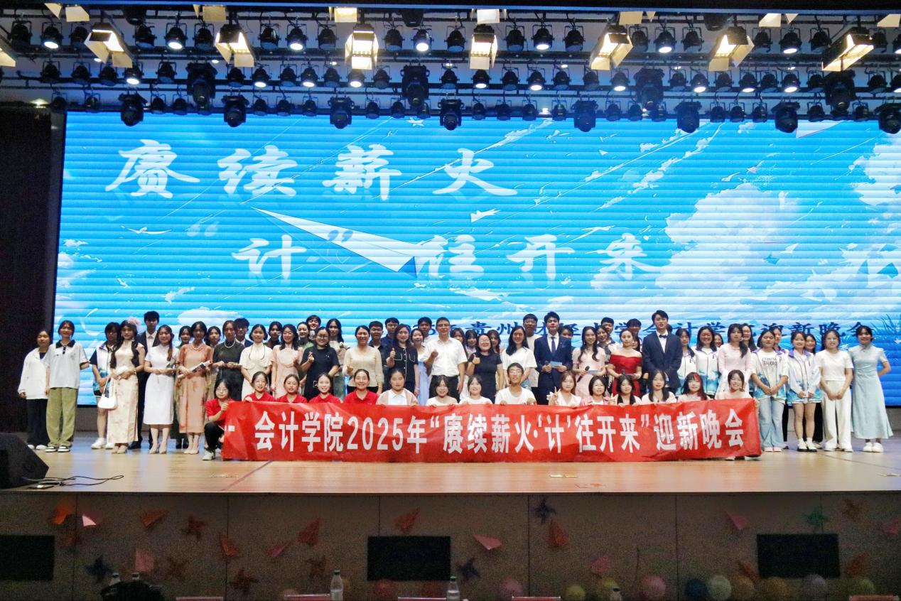 会计学院2025年迎新晚会正式落下帷幕。这不仅是一场视听盛宴的圆满收尾,更标志着2025级新生的大学生活自此扬帆启航。我们坚信,新一代“会计人”将携“赓续薪火”的初心使命,怀“‘计’往开来”的昂扬豪情,在学校这片沃土上,以奋斗为笔、以青春为墨,书写无愧于时代的青春华章!