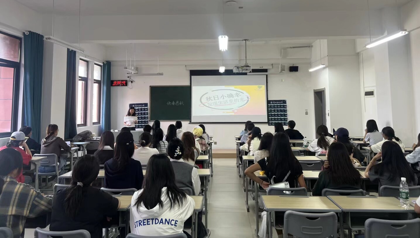 活动开始后,主持人首先围绕“秋日小确幸:发现生活里的光”的主题展开分享。她先用生动的语言结合具体案例,为同学们分析了秋日情绪波动的成因;接着,进一步讲解在沉郁的秋日里发现“生活之光”的美妙之处,并阐述了秋日保持好心情、好情绪对生活的重要性;随后,还详细科普了与“发现生活里的光”相关的心理学专业知识。分享尾声,主持人建议大家走进秋日校园,主动寻找属于自己的“生活之光”,用心维护秋日心情、收获专属的秋日小确幸。同学们全程认真聆听,纷纷表示此次分享让自己受益匪浅,不仅学会了在秋日更好地调节自我情绪,还懂得了要用善于发现美的眼睛欣赏秋日风景,在日常中捕捉生活之美、持续保持好心情。
