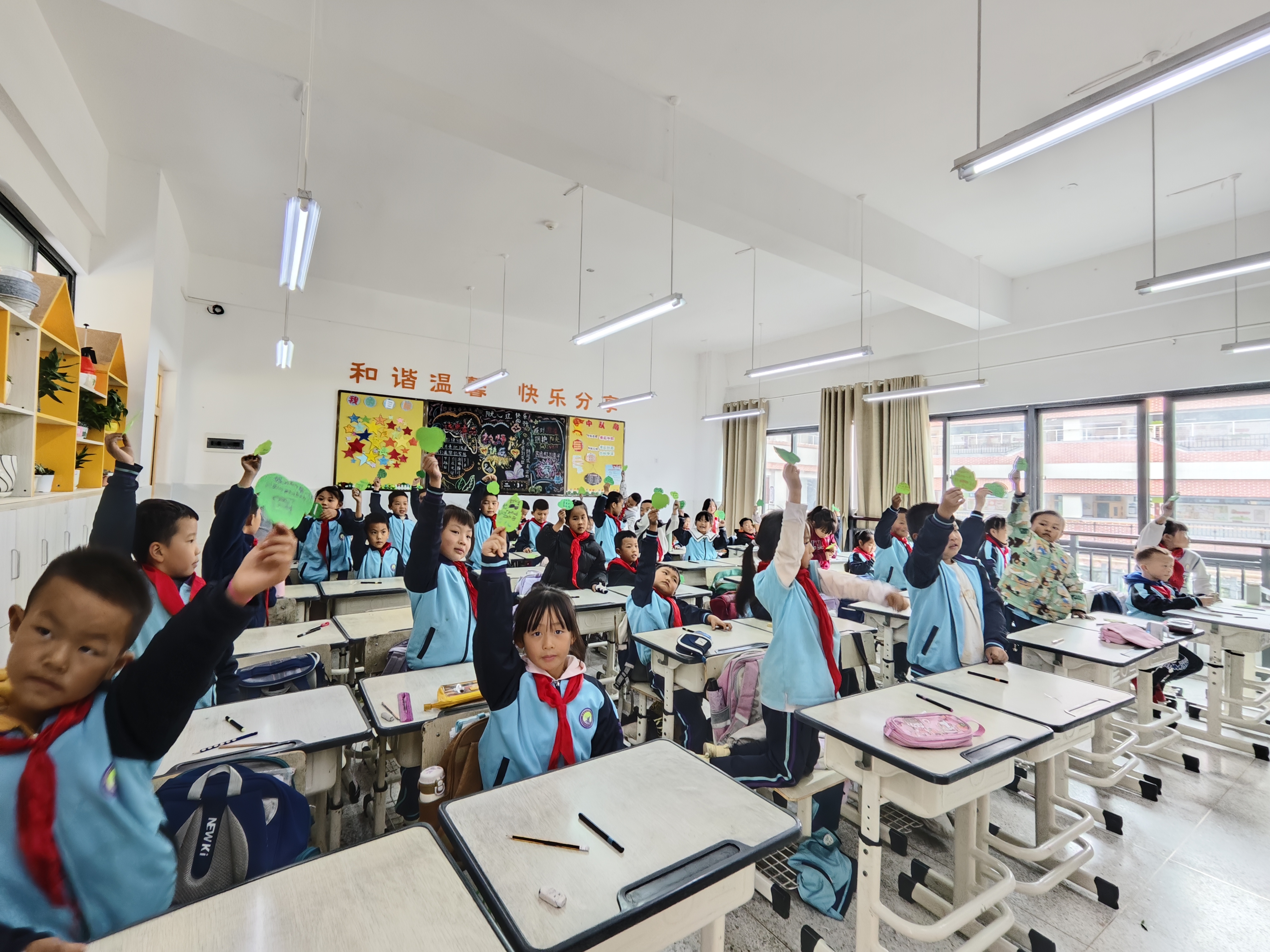 随后,会计学院研究生第三党支部在二年级3班副班主任黄星美的引导下来到教室开展活动。张晓梅用活泼的语气与轻松的游戏调动积极性,营造活动氛围,小朋友们兴趣高涨。之后江婷婷通过绘声绘色的讲解,结合PPT引导小朋友们理解“梦想”的概念,江婷婷向小朋友们提到,梦想不分高低贵贱,要大声说出自己的梦想,在她的引导下,小朋友们纷纷鼓起勇气说出自己的梦想,之后她鼓励小朋友们在“心愿星星卡”上写下自己的梦想,并在同学们的帮助下将梦想贴在墙壁上,形成一棵承载着小朋友梦想的“参天大树”。江婷婷向小朋友们讲到要努力学习,在未来去实现自己的梦想,并祝愿在场的小朋友们都能实现自己的梦想。活动结束后,会计学院研究生第三党支部与二年级3班全体师生在操场进行合影留念。