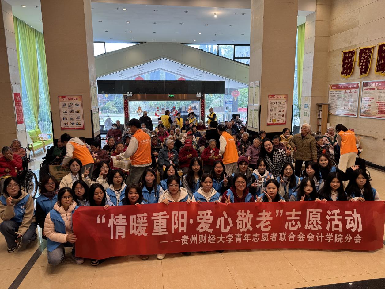 随着传统佳节重阳节的临近,贵州财经大学青年志愿者协会会计学院分会秉承中华民族尊老、敬老、爱老的美德,于2025年10月25日下午前往贵州省贵阳市睿悦红阳康养中心,开展“情暖重阳・爱心敬老”主题志愿服务活动,向康养中心的老人们传递节日的关怀与温暖。