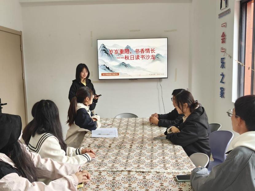 为传承中华优秀传统文化,营造浓厚校园读书氛围,丰富同学们的课余文化生活,2025年10月24日,会计学院校园文明督导队于一站式学生服务社区组织开展“会院书香”系列活动第七期——“岁岁重阳,书香情长”秋日读书沙龙交流会。