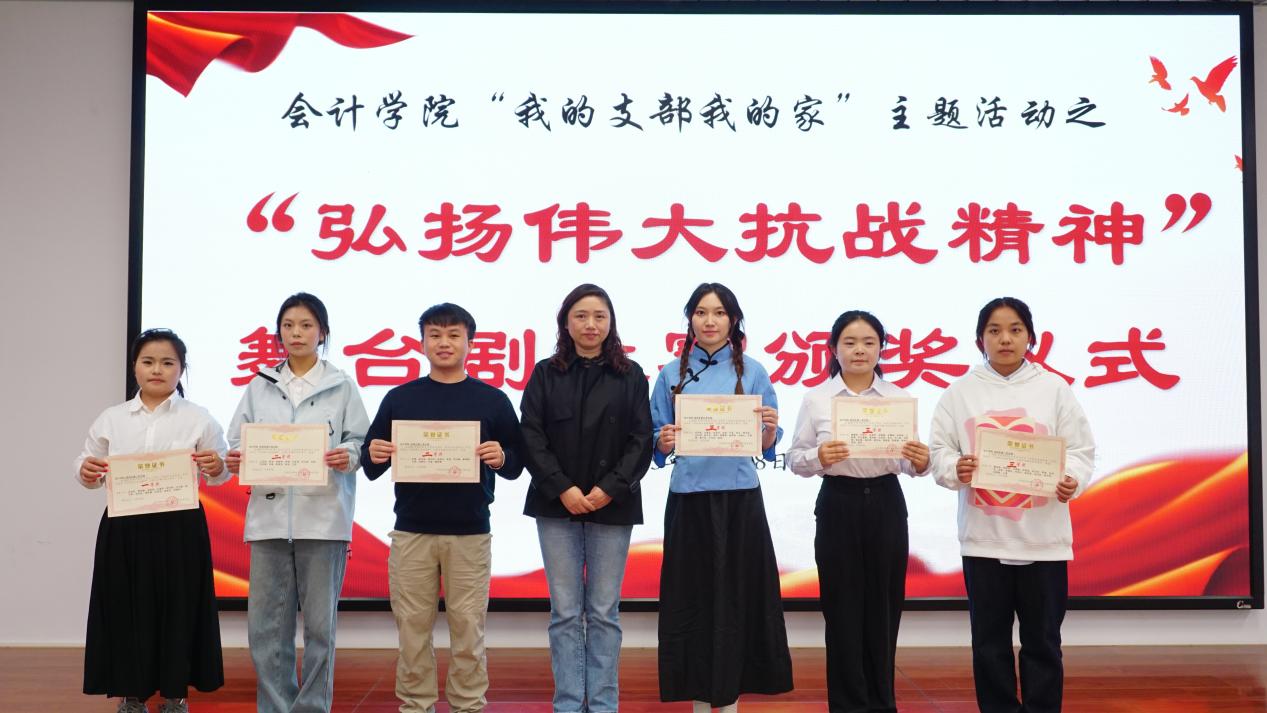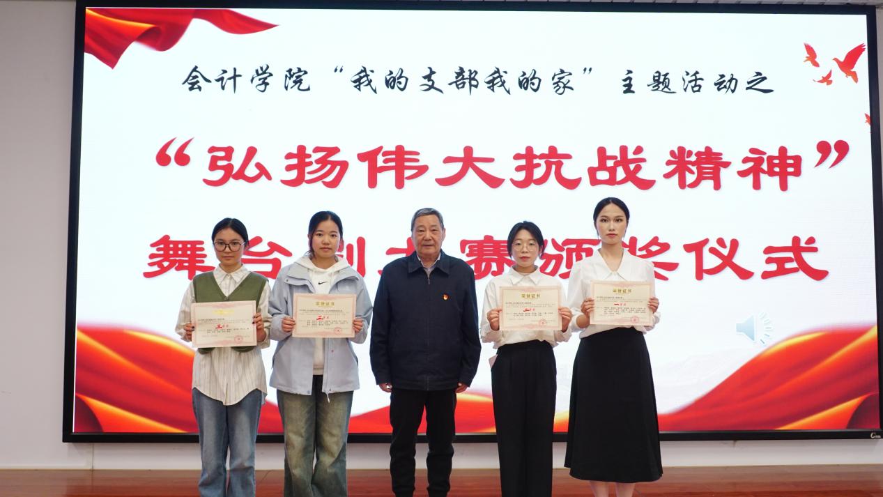 为强化党员、团员思想政治教育、爱国主义教育、革命传统教育,2025年10月28日,会计学院在文正楼107举办了“我的支部我的家”系列活动之“弘扬伟大抗战精神”舞台剧大赛。本次比赛特别邀请校关工委副主任、特邀党建组织员秦立俊和院关工委副主任陈金国到场指导,会计学院党委书记王志亮、党委副书记胡闽、党委副书记黄忠莉出席,各科室教师代表及各学生组织负责人到场担任评委,会计学院各党支部、团支部学子们到场参加比赛。
