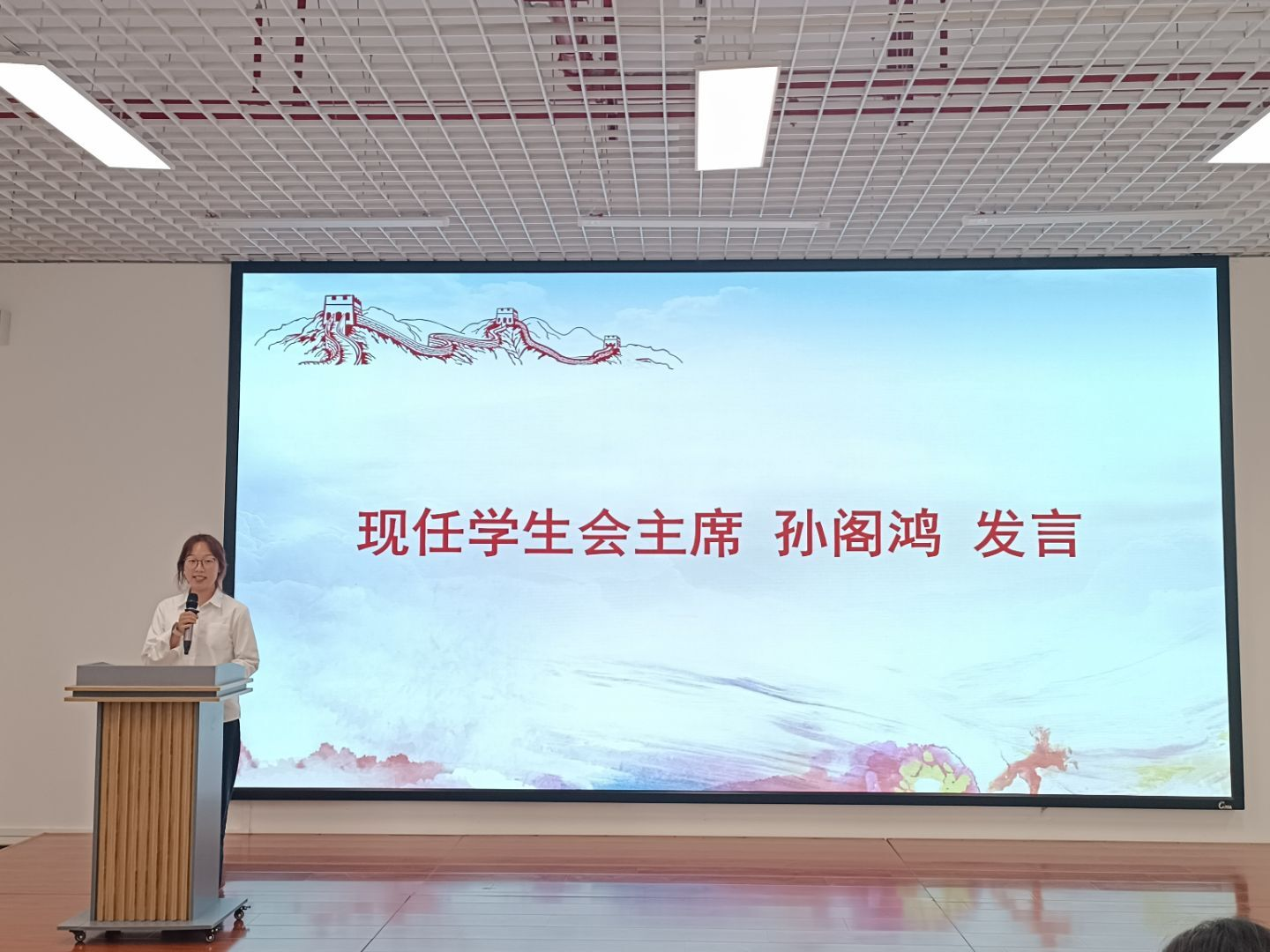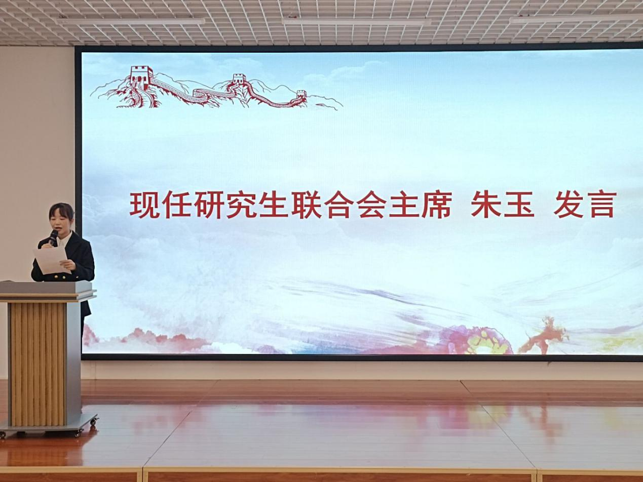 现任学生党建工作中心主任潘广妹、学生会主席孙阁鸿、研究生联合会主席朱玉分别发言,代表新一届学生组织向学院和全体同学作出承诺,表示将以更加饱满的热情迎接未知的挑战,带领新一届学生组织再创辉煌佳绩,书写出更加绚烂的篇章。
