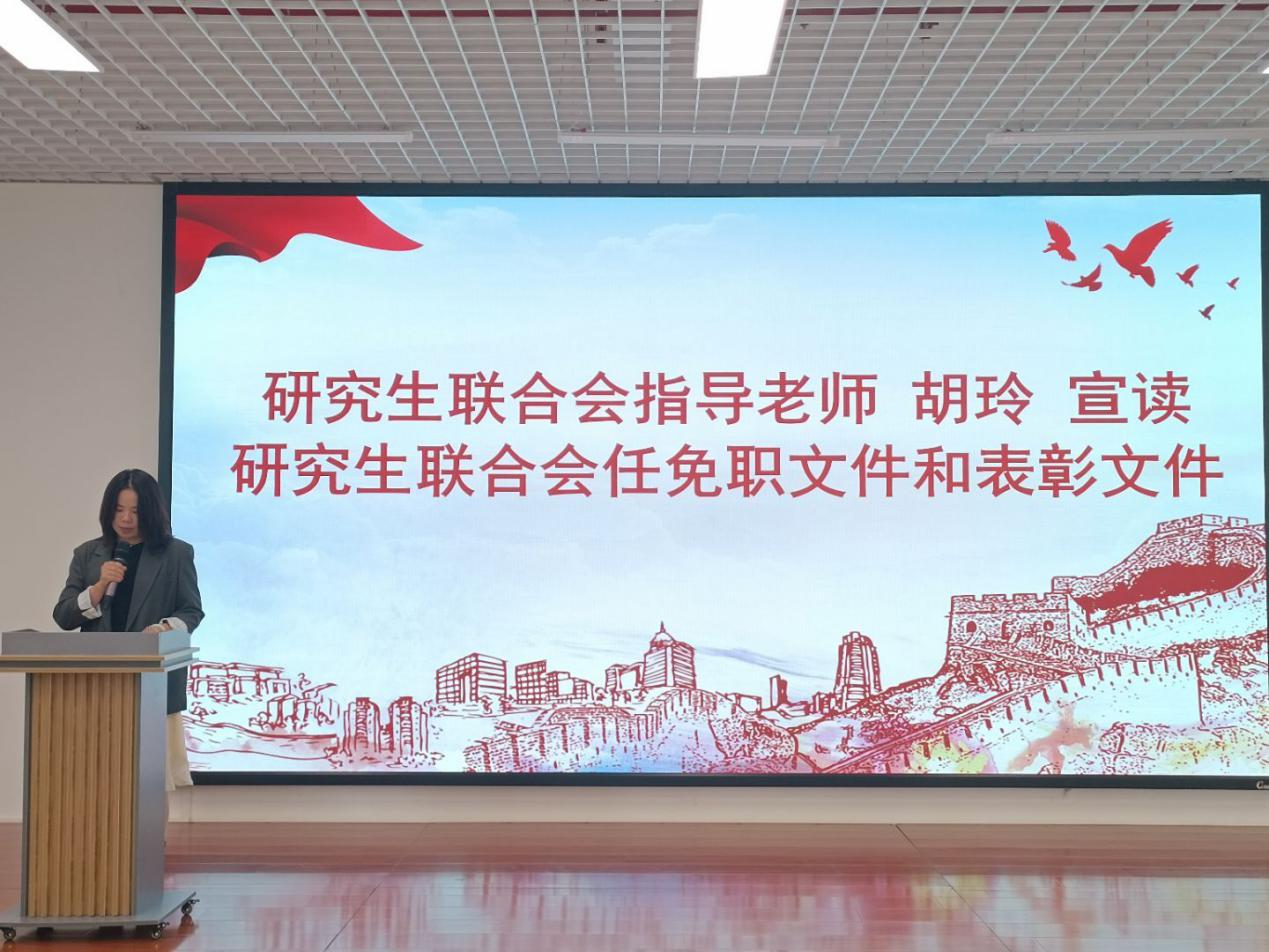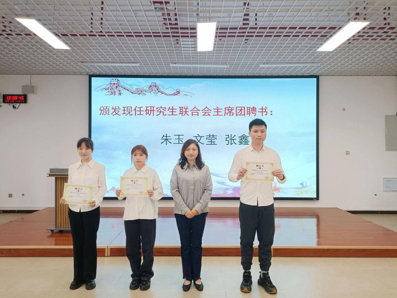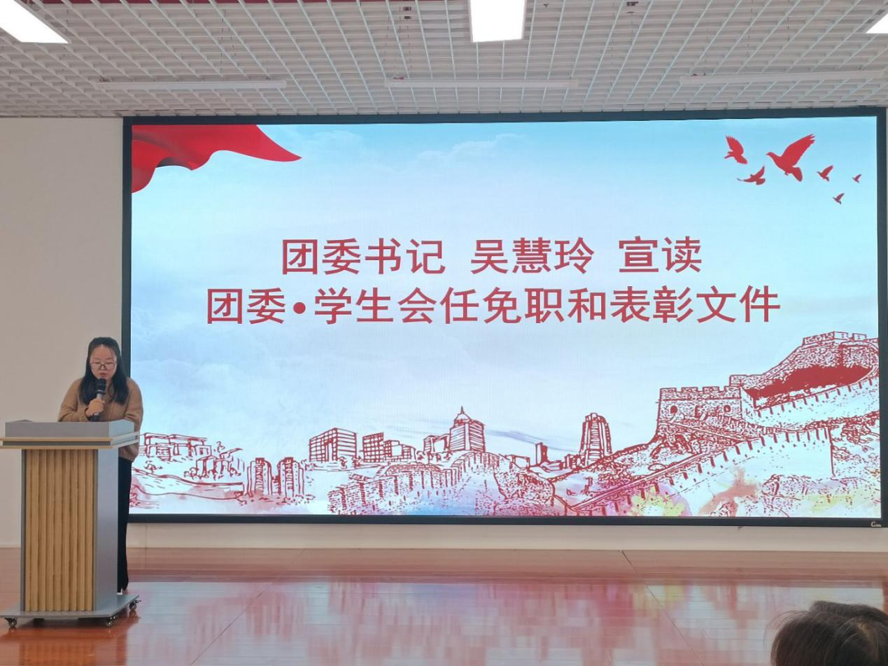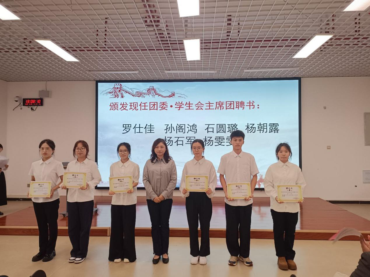 会上,全体成员高唱了中华人民共和国国歌。专职组织员蒲亚晴宣读了学生党建工作中心2025年度任免职和表彰文件,团委书记吴慧玲宣读了团委·学生会2025年度任免职和表彰文件,研究生联合会指导老师胡玲宣读了研究生联合会2025年度任免职和表彰文件。随后,大会表彰了上一届学生组织表现突出人员,为现任学生组织主要负责人颁发了聘书。