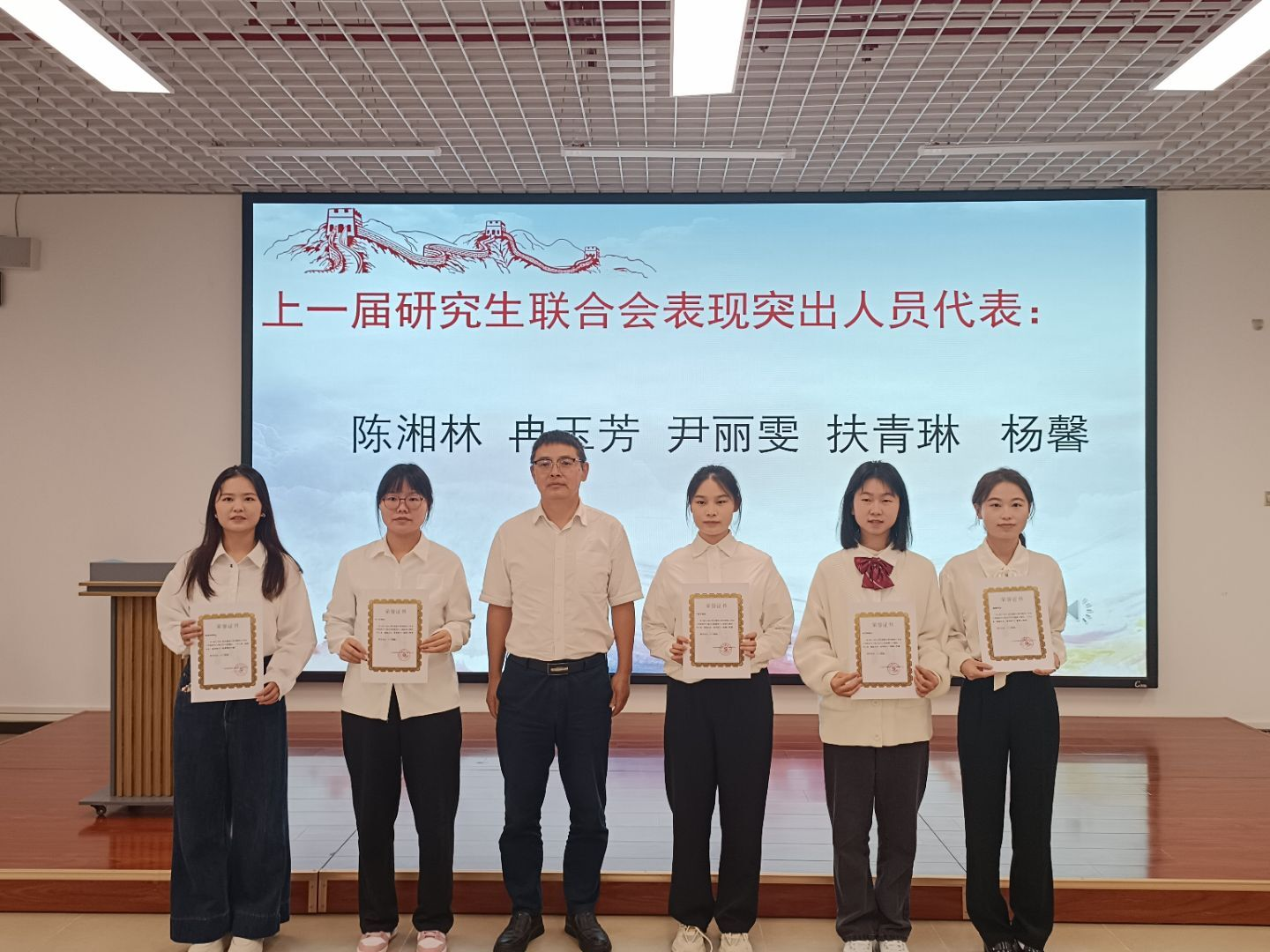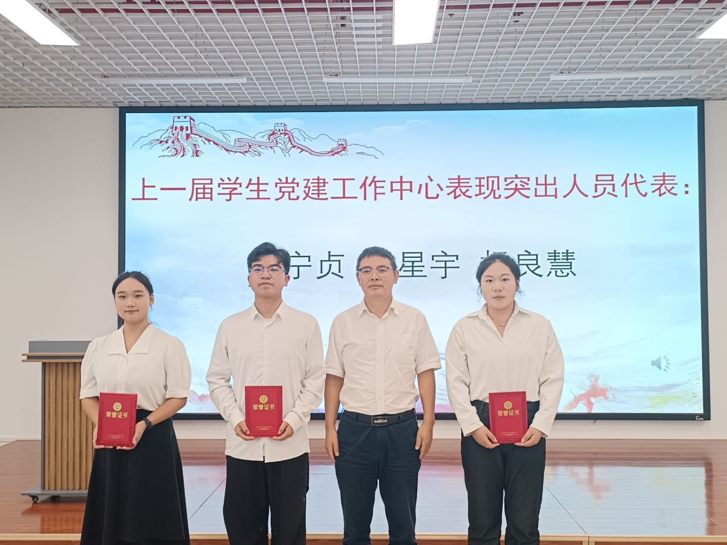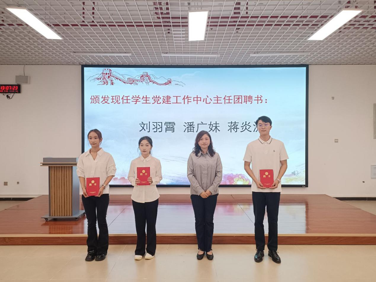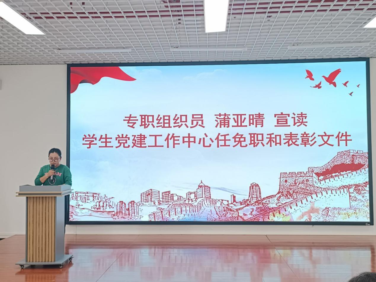 会上,全体成员高唱了中华人民共和国国歌。专职组织员蒲亚晴宣读了学生党建工作中心2025年度任免职和表彰文件,团委书记吴慧玲宣读了团委·学生会2025年度任免职和表彰文件,研究生联合会指导老师胡玲宣读了研究生联合会2025年度任免职和表彰文件。随后,大会表彰了上一届学生组织表现突出人员,为现任学生组织主要负责人颁发了聘书。