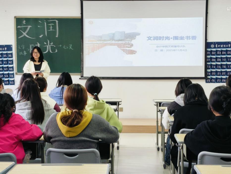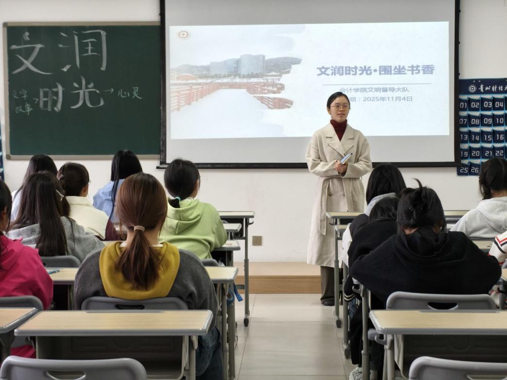 为进一步营造学院浓厚书香氛围,丰富同学们的校园文化生活。2025年11月4日,会计学院校园文明督导队于文渊楼2-3组织开展“会院书香”系列活动第八期——“文润时光,围坐书香”读书沙龙交流会。校园文明督导队指导老师杨胜丽出席此次活动。
