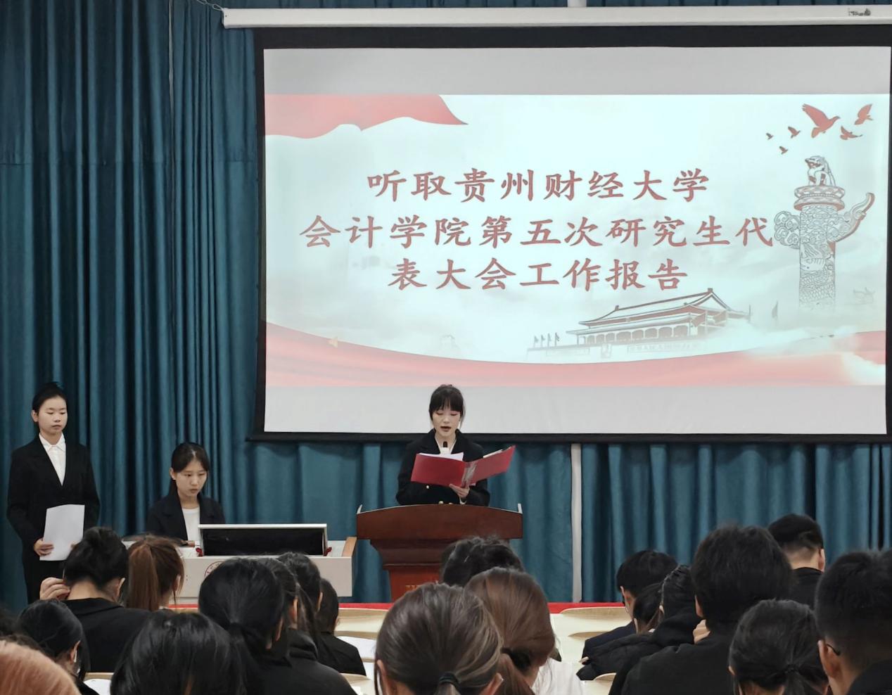 2025年11月14日,贵州财经大学会计学院第九次学生代表大会暨第五次研究生代表大会在文思阶教1-1正式召开。贵州财经大学团委副书记陈伟及学院党政领导班子出席此次大会,参加本次大会的还有会计学院教师代表及102名学生代表。