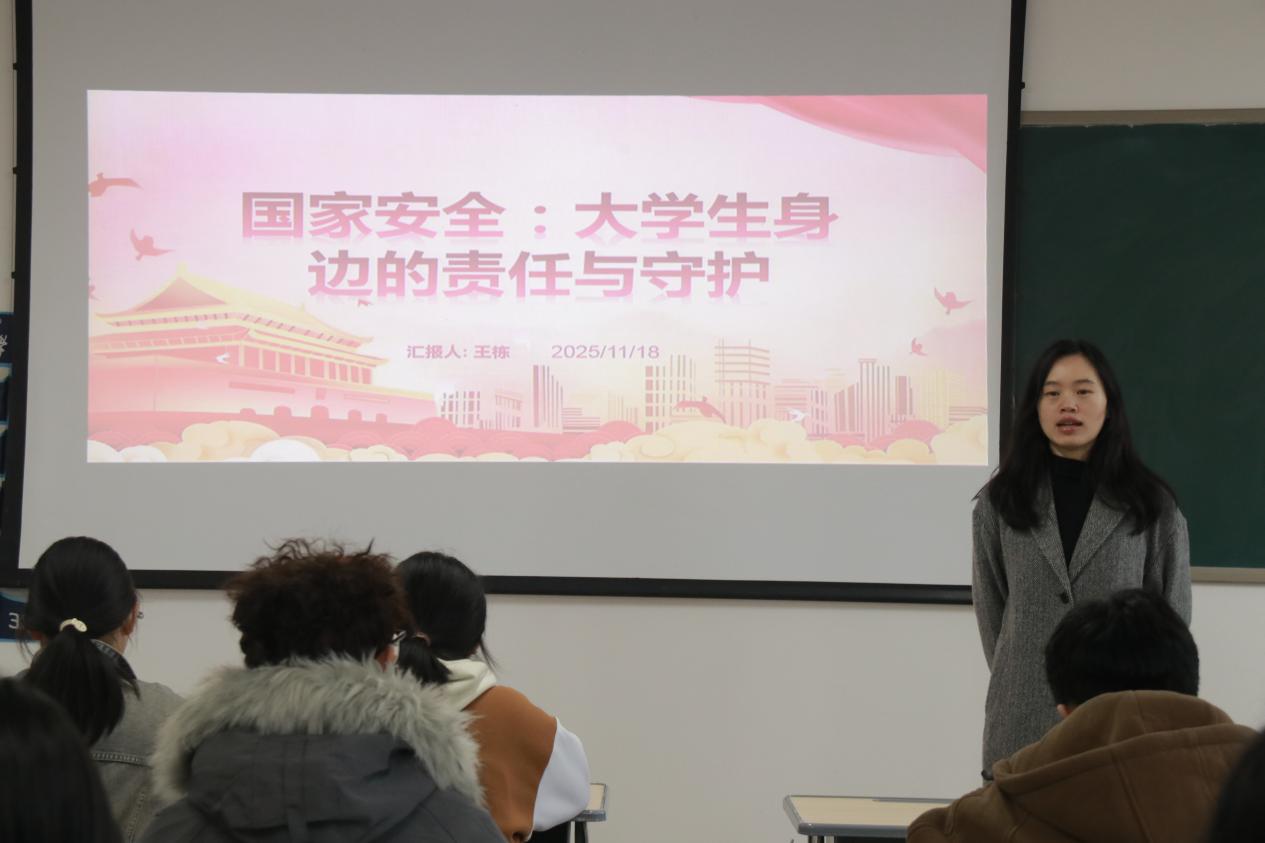 为筑牢校园安全防线、强化大学生国家安全意识,2025年11月18日,会计学院校园文明督导队在文渊楼2-4组织开展了“国家安全:大学生身边的责任与守护”安全教育主题活动。会计学院各班安全委员、校园文明督导队全体成员参加活动、会计学院校园文明督导队指导老师杨胜丽出席本次活动。