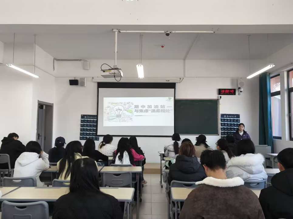 随着期中的到来,许多同学的焦虑和压力逐渐增大,为帮助同学们正确认知焦虑,掌握科学情绪调节方法。2025年11月21日,会计学院心理协会在文渊楼2-4组织开展“期中加油站——与焦虑‘温柔相处’”心理健康教育主题活动。本次活动由王洁云同学主持,各班心理委员及心理协会全体成员参加。