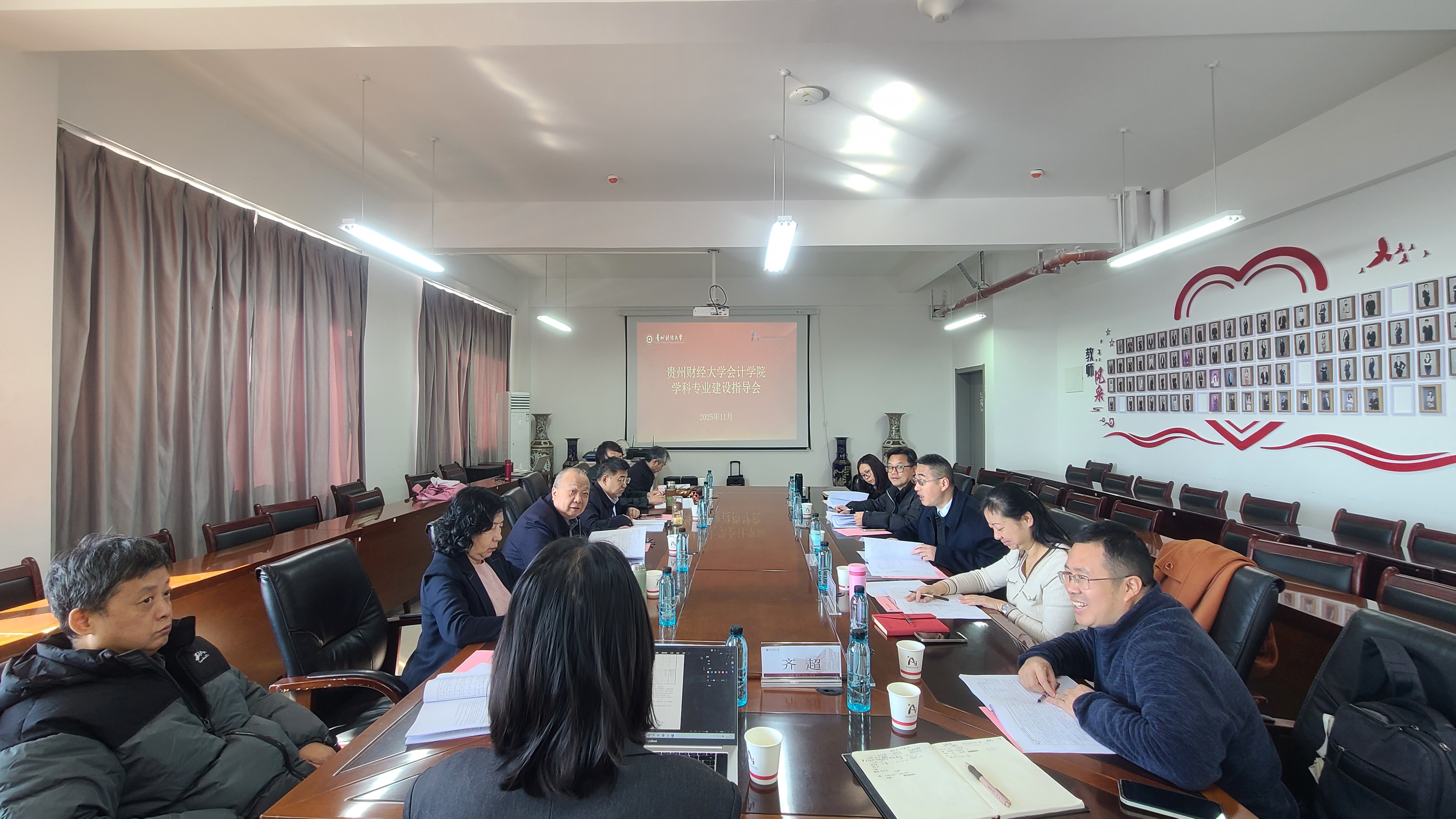 为深入贯彻落实新时代高等教育高质量发展要求,进一步优化学科布局、提升专业建设水平,2025年11月29日上午,会计学院在东区文渊楼505会议室召开学科专业建设指导会。会议特邀山东财经大学研究生院院长毕秀玲教授、浙江工商大学会计学院黄溶冰教授、暨南大学管理学院会计系饶品贵教授、天津财经大学会计学院沈征教授、山西财经大学会计学院吴秋生教授、西南政法大学商学院党委书记郑国洪教授等多位国内知名专家莅临指导。贵州财经大学副校长、党委常委杜剑出席会议并致辞,会计学院副院长邱静(主持行政工作)主持会议,学院副院长周松、院长助理崔云、审计专硕硕导组组长黄晓芬、学科建设管理科副科长齐超及教师代表周聪等参加会议。