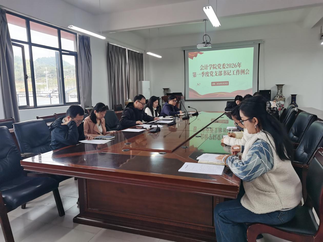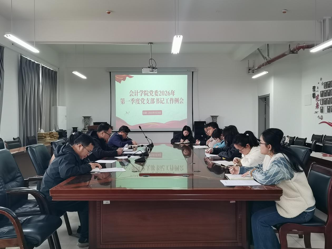 2026年3月31日上午,会计学院党委在文渊楼505会议室召开2026年第一季度党支部书记工作例会。学院党委领导班子、各党支部书记参会,会议由学院党委书记唐文杰主持。